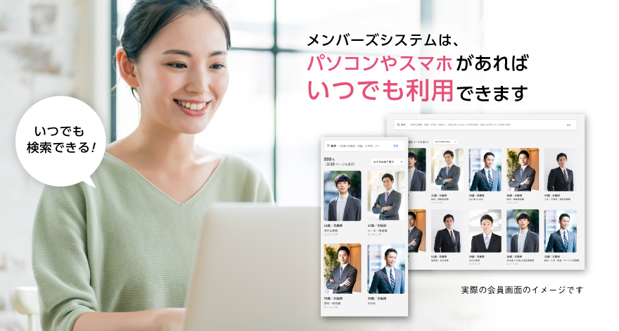 結婚相談所 Himariē(ヒマリエ)はTMS(全国結婚相談事業者連盟)に所属しており、提携先を含む全国の登録会員数は84,000名以上!※ 多彩な機能をもつ会員システムを利用することで、アクティブな活動が行えます。